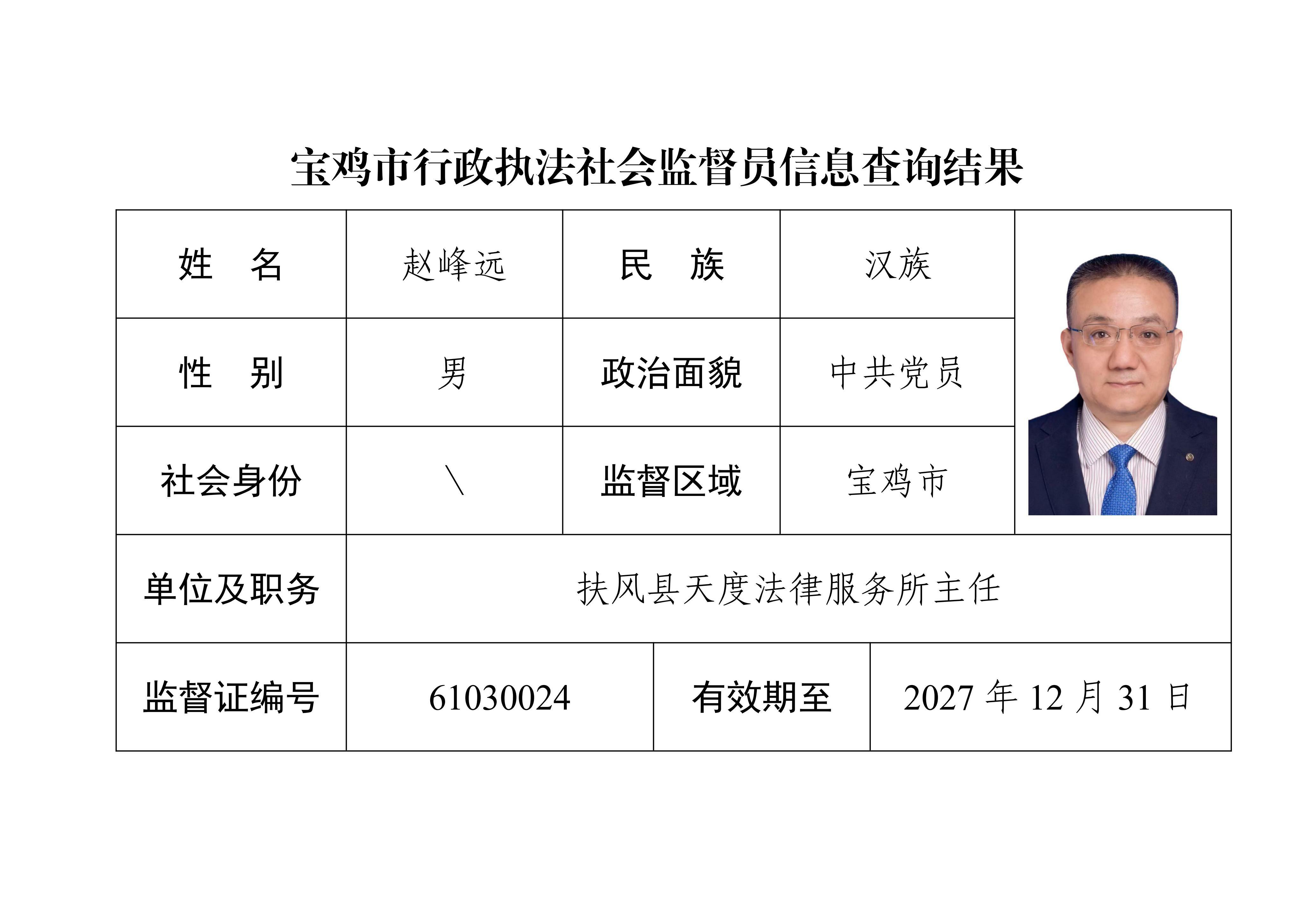 宝鸡市行政执法社会监督员信息查询结果-24.赵峰远