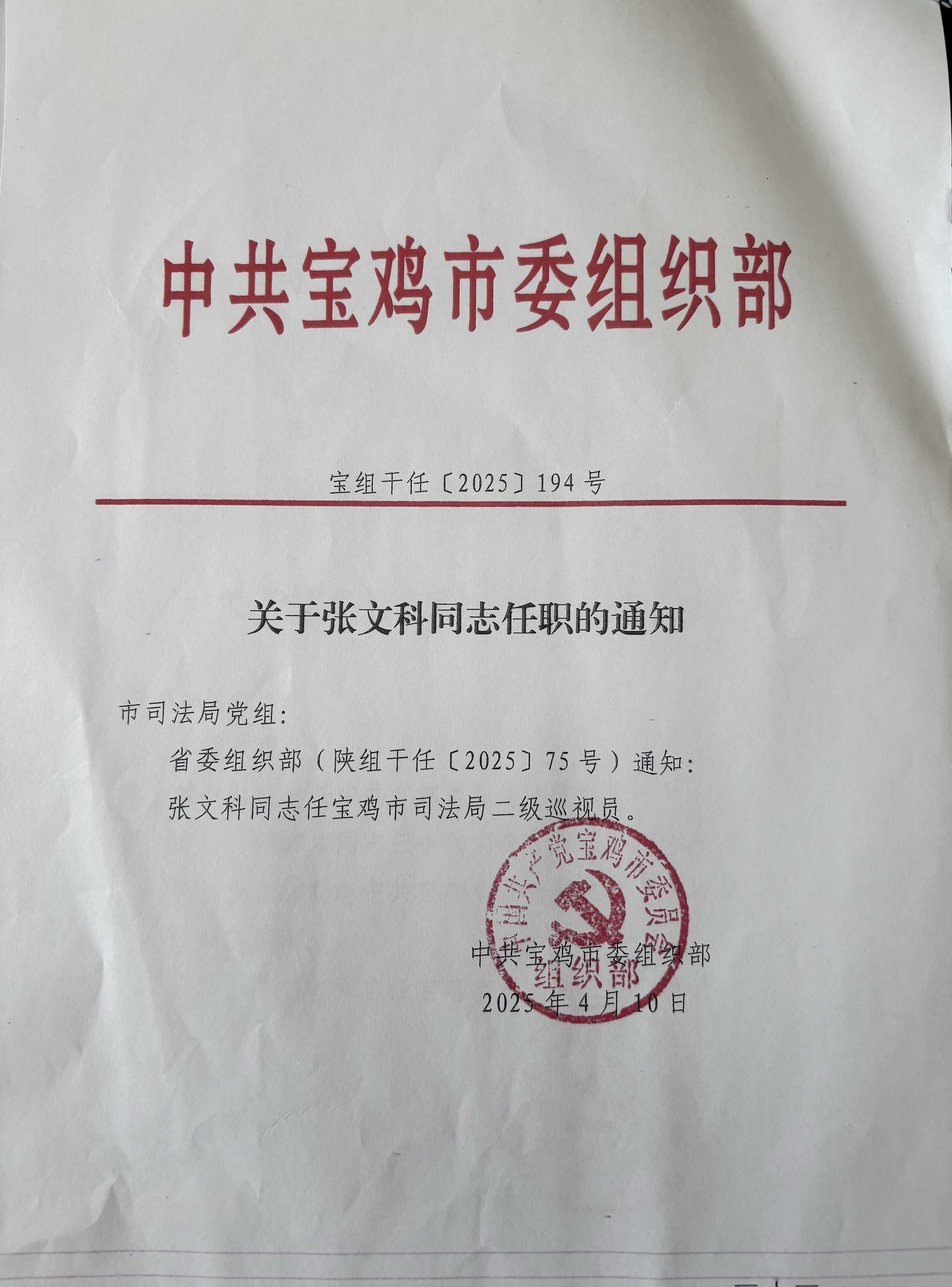 关于张文科同事任职的通知