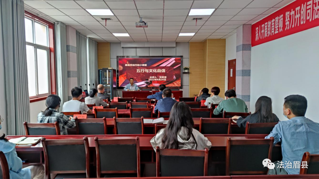 8月26日下午,眉县司法局“司法行政小课堂”在局407会议室开讲。局长张宽雄、原公证处副主任党君清分别围绕司法行政队伍党风廉政建设和增强文化自信给全体司法行政干部讲授了第一堂课。