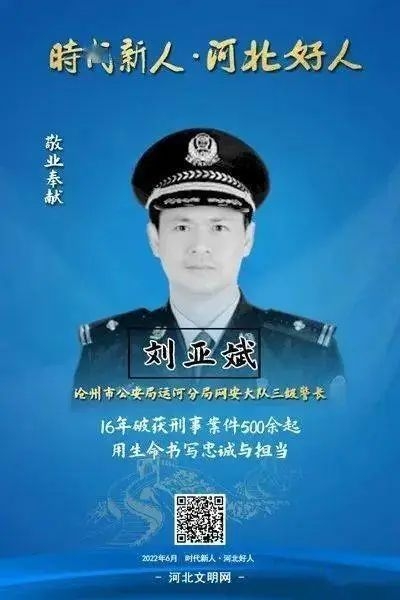 通知指出,刘亚斌同志生前系河北省沧州市公安局运河分局网络安全保卫大队三级警长。2022年5月7日,因连续工作劳累过度、突发疾病,经抢救无效因公牺牲,年仅42岁。刘亚斌同志是政法系统深入学习贯彻习近平新时代中国特色社会主义思想、忠实践行习近平法治思想的优秀代表,是在政法工作一线忠诚为民、勇于担当、追求卓越的先进典型。