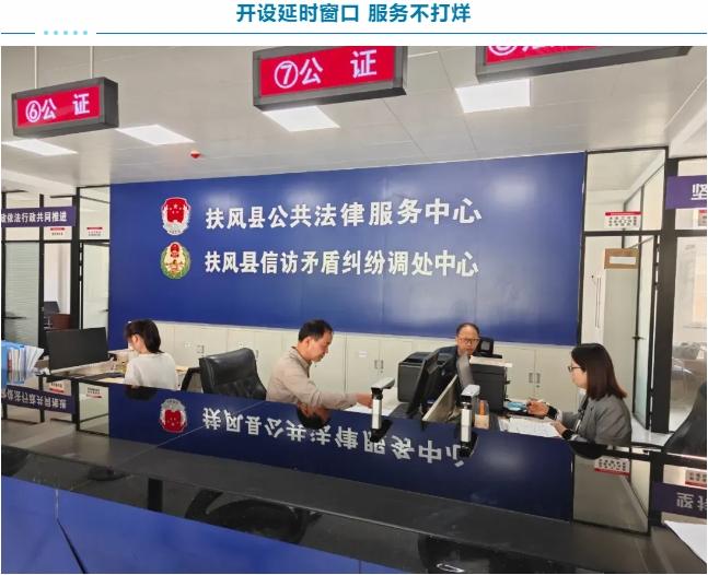 县公证处坚持将群众需求放在首位,解决部分群众“上班没空办证,下班无处办证”的难题,推出延时服务,在公共法律服务大厅设立延时服务窗口,在周末休息日、节假日安排值班人员,提供接待群众咨询办理公证的服务,实现办理业务“不断档”,确保错时服务期间能办事、办成事。积极响应群众的需求,精准服务,做到服务事项不变,服务内容不减,服务时长不变,切实为群众提供便利,增强群众对公证服务的满意度和获得感。