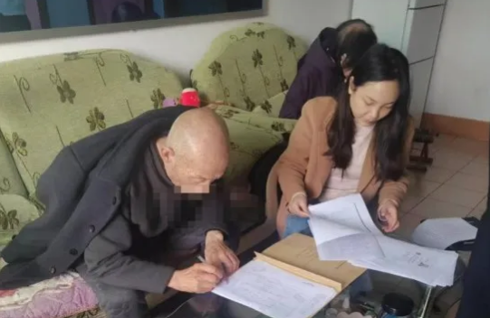 为高效办理好公证,公证人员提前梳理了办证相关证明材料并告知其家属,于11月4日下午携带相关文书及设备来到老人家中,详细向老人告知了放弃继承声明公证的法律意义、程序和后果,确保老人在完全知情的情况下作出决定。随后,公证人员依法对老人进行身份核验、审查相关材料,在确保老人完全理解并自愿签署相关文件后,公证人员完成了公证手续的办理。